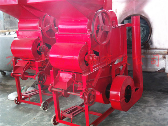 花生剝殼機一般是有很多部件做成的,結構及工作原理:本機采用紋纖、柵條、凹板、風機、比重分選篩及二次提升機等幾部分組成,結構簡單緊湊、性能穩定、安全可靠。工作原理:花生果由人工喂料,先落到粗紋柵里,由于紋板轉動與固定柵條凹板間的搓力,將花生殼剝離,分離后的花生仁與殼同時經過柵網落下,再經過風道由風力將大部分花生殼吹出機外,而花生仁和一部分尚未剝離的花生小果一起落入比重分選篩進行精選,經過重篩選后,花生仁由分離篩面上行,通過料口流入麻袋,而尚未剝開的花生小果,則由篩面下行,經過出料道口流入提升機。再由提升機送入細紋柵進行二次剝殼,再經過比重分行篩分選,既可達到全部剝殼。